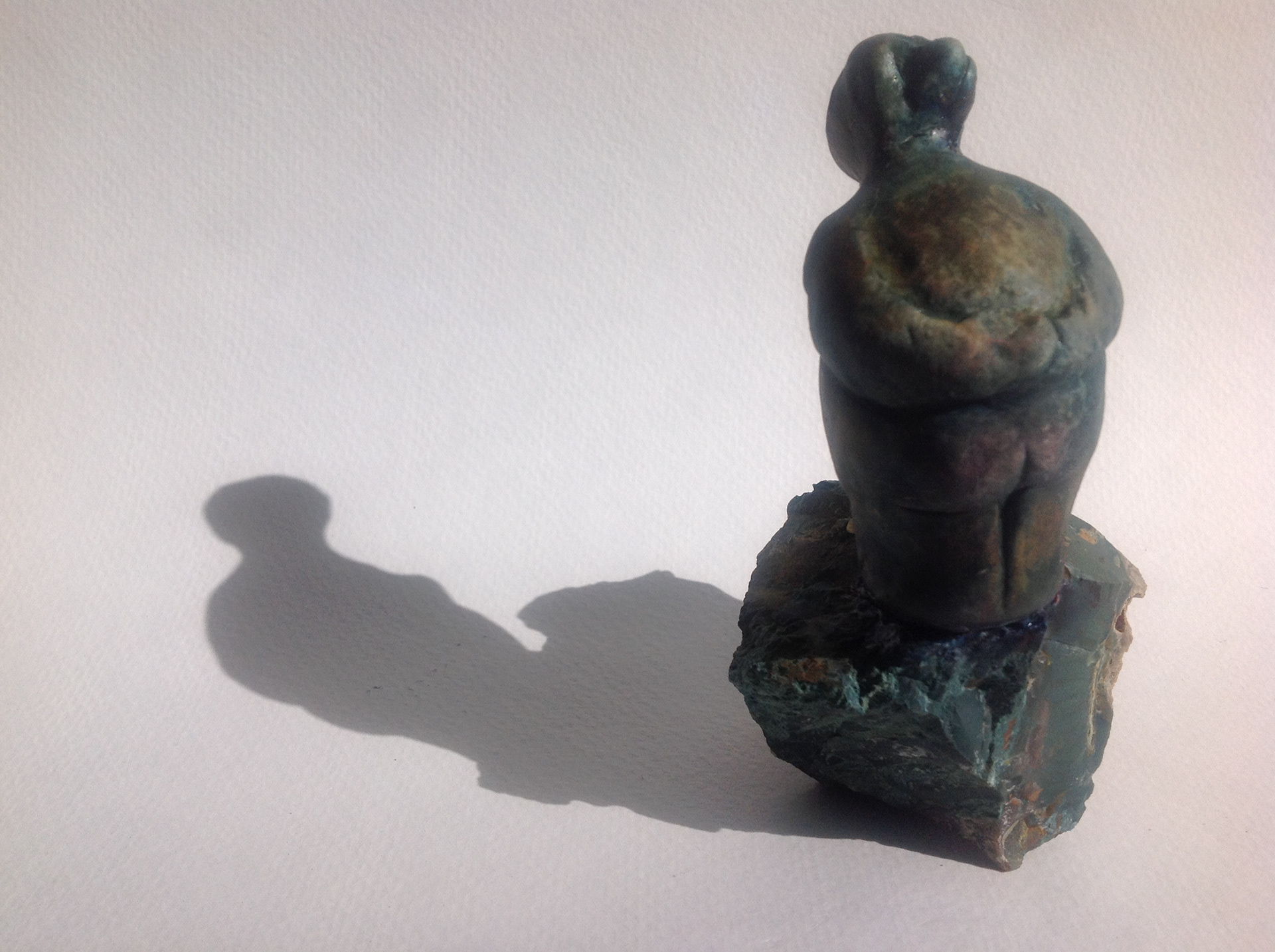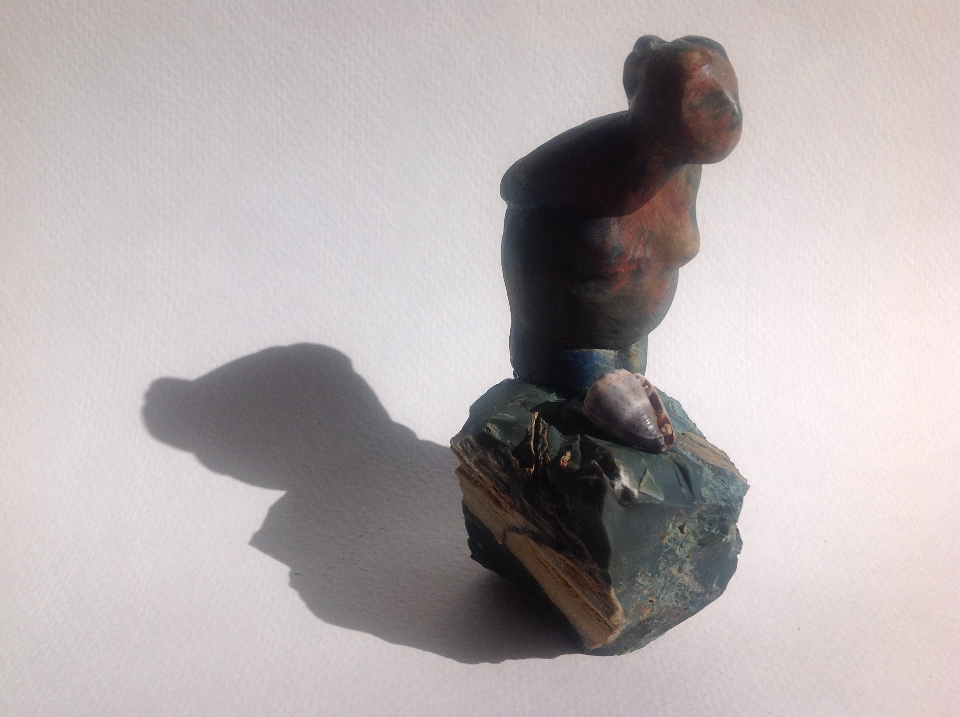 Beautifully crafted intimate figure, standing on gemstone by the sea.