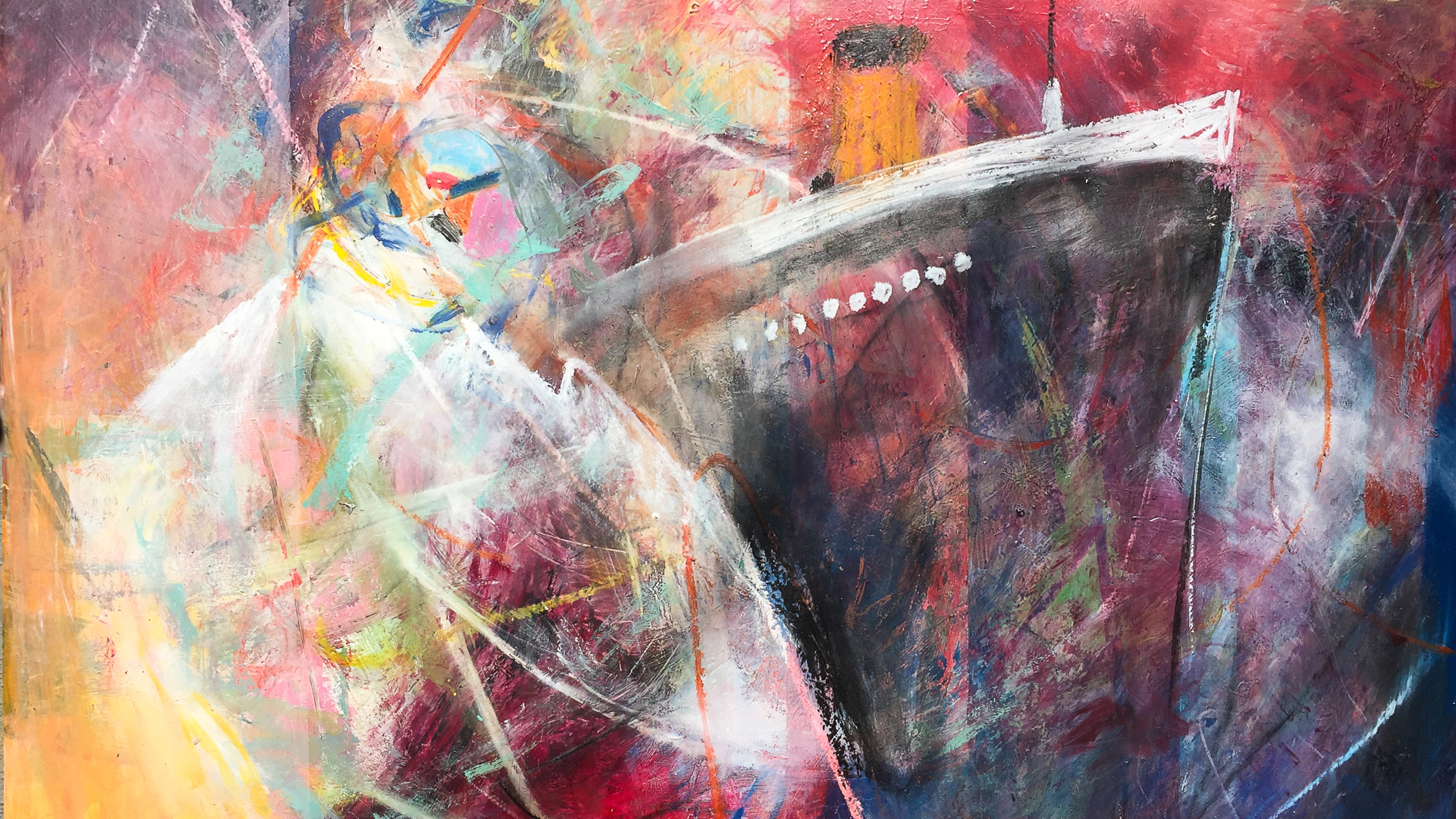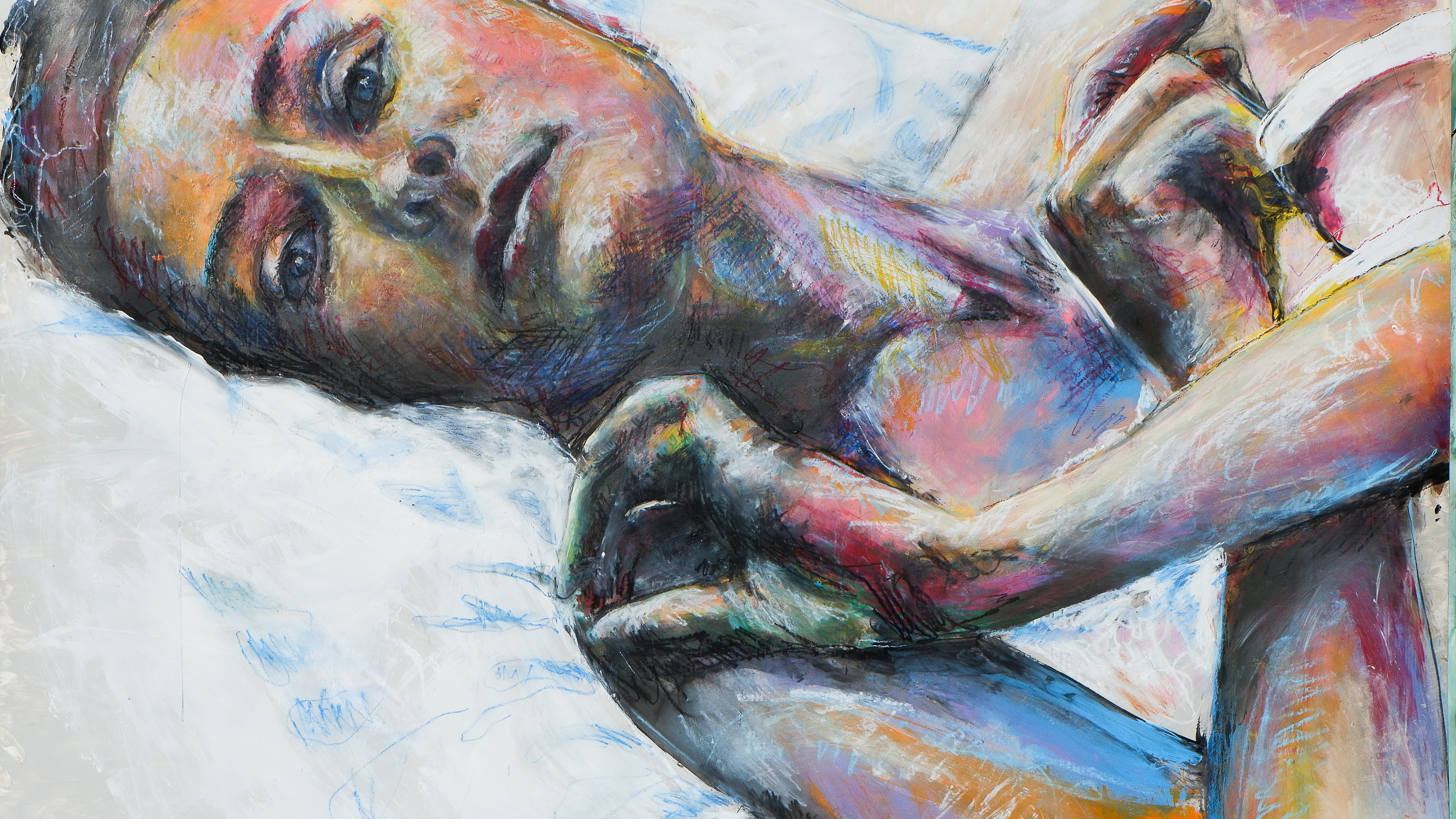 Mon Amie (My Friend) 28h x 38w" Stone Paper Acrylic, Oil Crayon, Latex