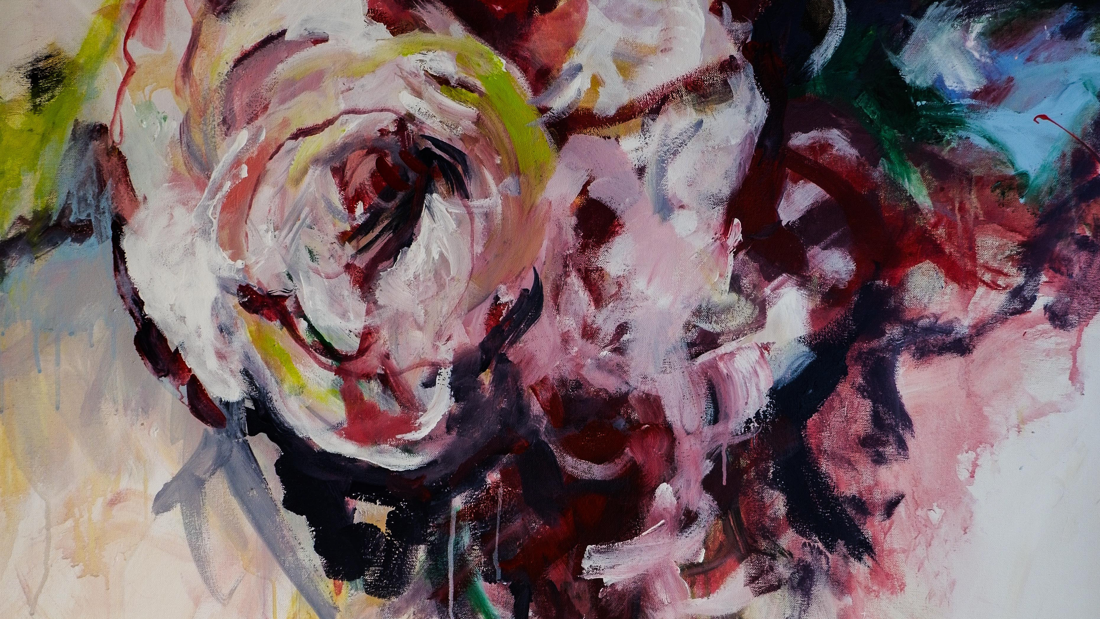 Keywords: peach, pink, brush strokes, Bright colours, bright colors, thick paint, soft colors, soft colours, expressionism, expressionist, gray, orange