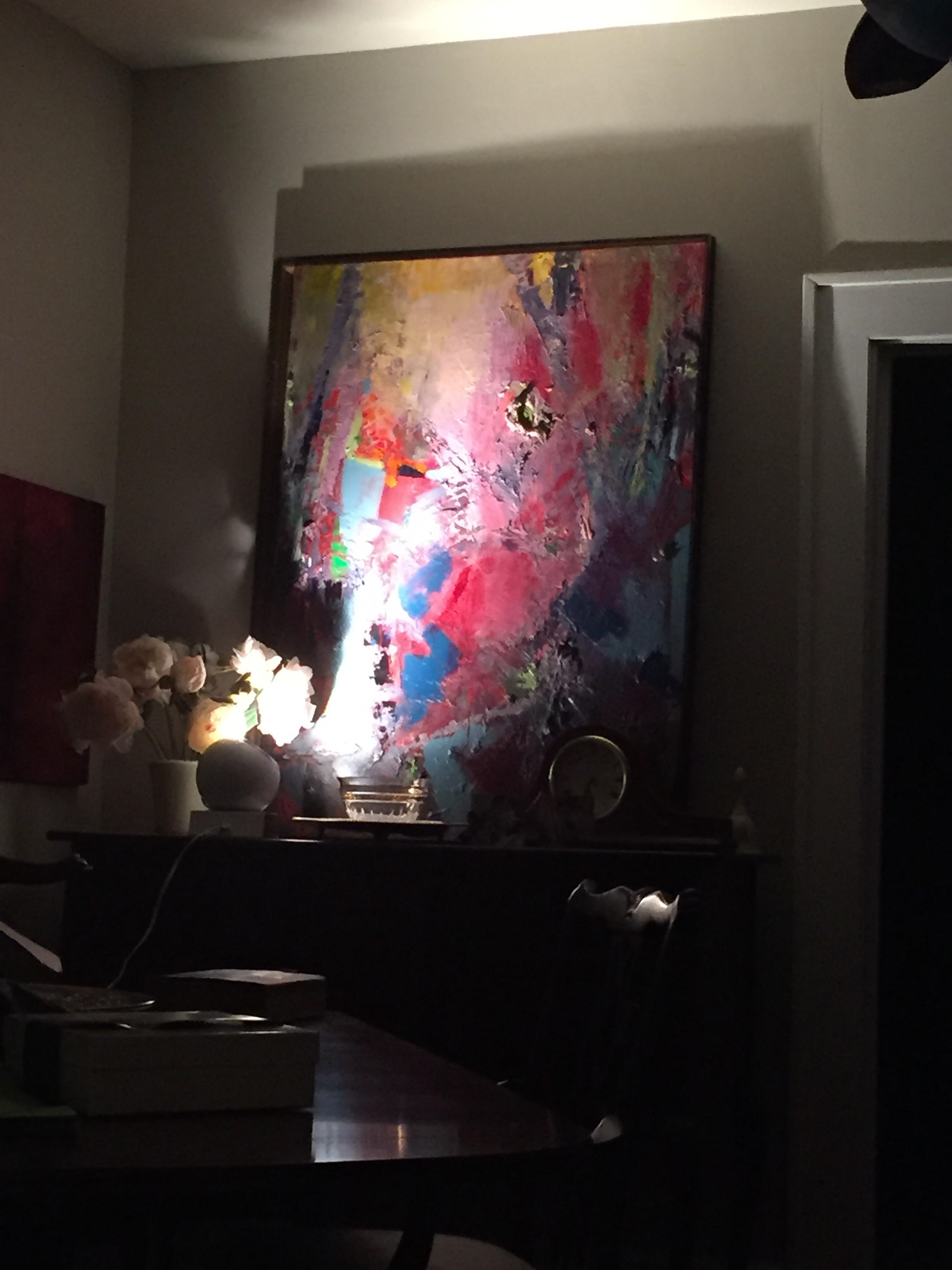 Wysteria Painting: Enamel, Oil, Latex, Acrylic and Oil Crayon on Canvas. 36" x 48" Painting: Mixed Media Oil on Canvas. Very thick texture areas built up brushwork. This work makes an impactful statement. Nature inspired, gestural brush strokes in contrast with small rhythmic points and lines, improvised to music. Wisteria cascades sweet blooms of lavender and soft purple petals of passion all picturesque outside her door... There are times when a painting comes together with exciting colors filling the room with light. This is one of those times. cheryljohnsonartist.com Changing the world one idea at a time. LET ME COLOR YOUR WORLD #cheryljohnsonartist Keywords: Purple, Red, Black, Blue, Yellow, Abstract Expressionism, Wall Decor, Green, Impressionism, Landscape, Large, Orange Subjects: Landscape Styles: Abstract, Modern, Conceptual, Fine Art, Impressionism Mediums: Enamel, Oil, Latex, Acrylic, Oil Crayon